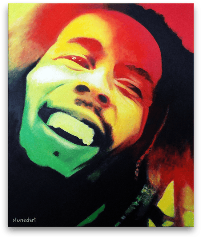 Original painting artwork. Tribute to Bob Marley, Jamaican singer-songwriter and reggae superstar.