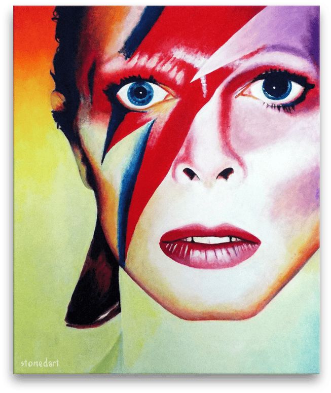 Original painting artwork. Described by Bowie himself as ‘Ziggy goes to America’, Aladdin Sane remains one of his most iconic creations.