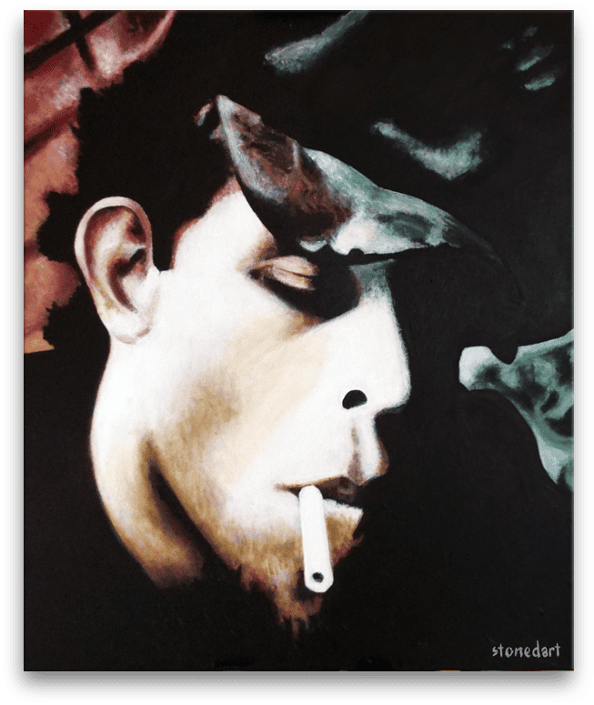 Original painting artwork. American singer-songwriter, musician, composer and actor Tom Waits.